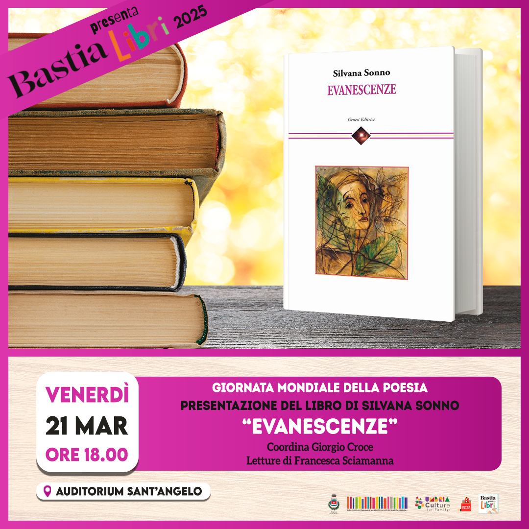 Bastia Umbra, 18/03/2025 – Venerdì 21 marzo è la Giornata Mondiale della Poesia e Bastia Presenta Libri vuole celebrare questa giornata con la presentazione del libro di “Silvana SonnoEvanescenze”.