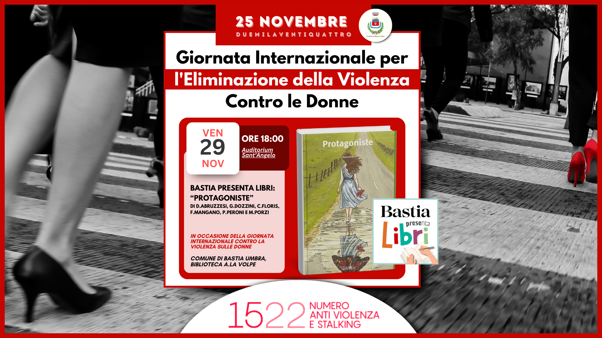 Bastia Umbra, 26 novembre 2024 – In occasione della Giornata per l’eliminazione della violenza contro le donne sarà presentato venerdì 29 novembre alle ore 18,00 a Bastia Umbra – Auditorium Sant’Angelo, il libro Protagoniste (ali&no editrice), un progetto letterario collettivo di raccolta fondi a sostegno dei Centri antiviolenza dell’Umbria.