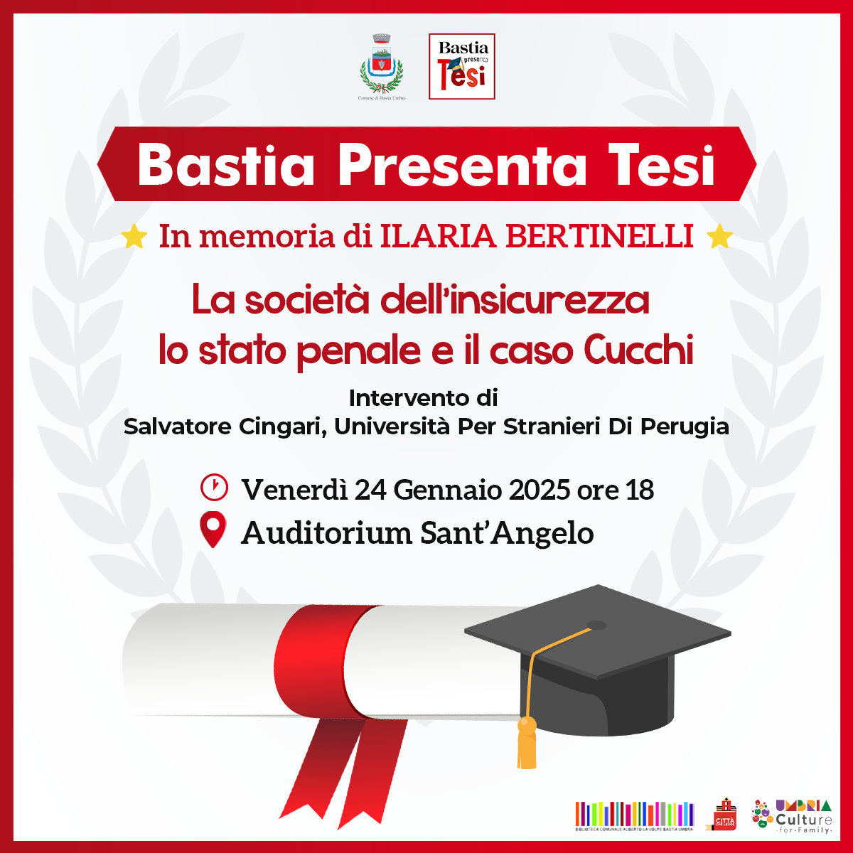 Apriamo il 2025 con la presentazione della Tesi in memoria di Ilaria Bertinelli “La società dell’insicurezza lo stato penale e il caso Cucchi” l’incontro sarà condotto dal Professor Salvatore Cingari dell’Università per Stranieri di Perugia.