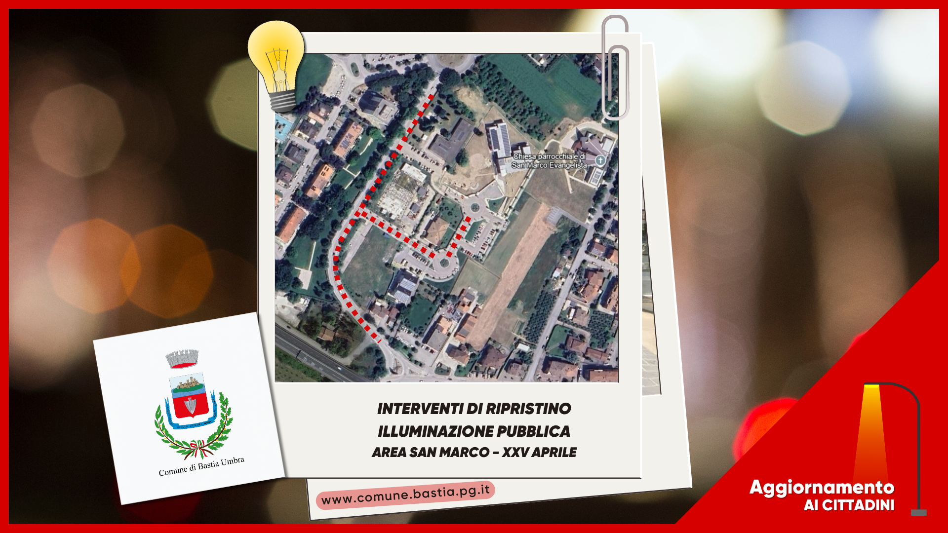 Bastia Umbra 3/09/2024. Si comunica ai cittadini che, a seguito di un rilevante guasto alle linee della pubblica illuminazione, gli impianti nell’area San Marco – XXV Aprile risultano al momento spenti.