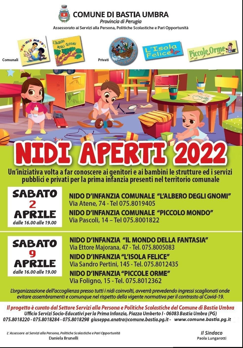 Sabato 9 Aprile dalle 16.00 alle 19.00 presso gli asili nido privati del Comune di Bastia Umbra “Il mondo della fantasia “,”L’isola felice “ e “Piccole orme”.