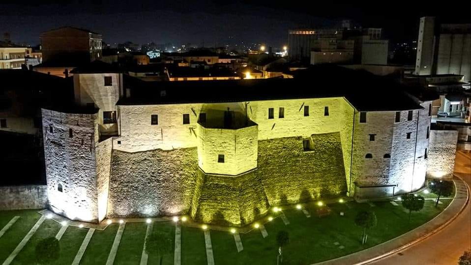 La Rocca Baglionesca, illuminata di colore giallo, colore simbolo della Giornata Internazionale della Donna è stato un altro elemento caratterizzante non solo un angolo bellissimo della nostra Città, un colore non fine a se stesso ma finalizzato a mettere l’accento sulla presenza sociale femminile.