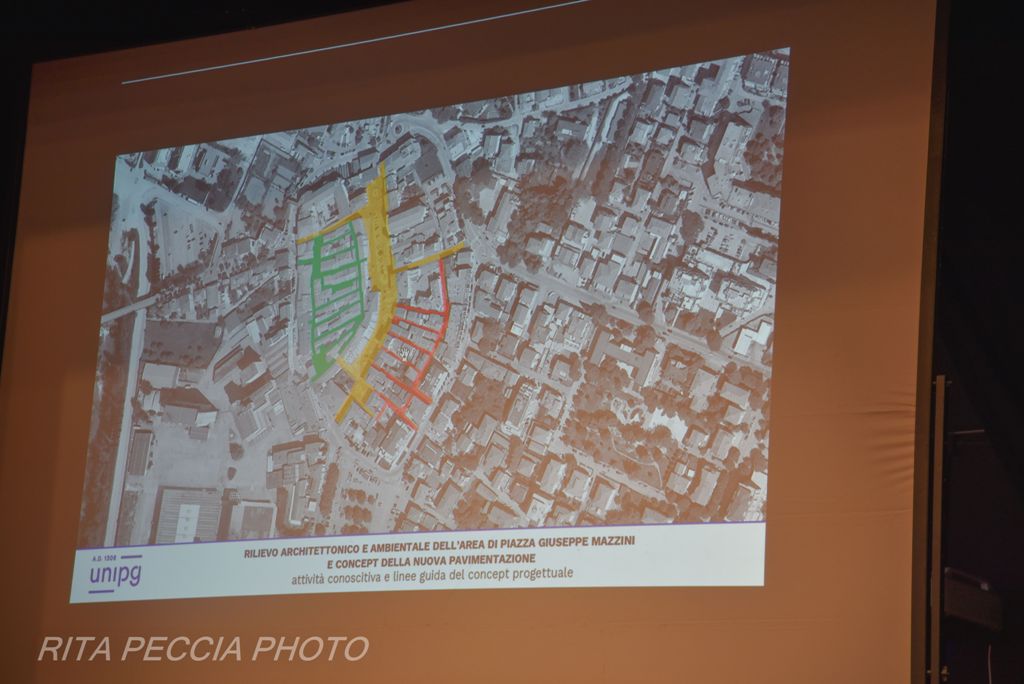 “Il progetto di sistemazione della centralissima Piazza Mazzini a Bastia Umbra… il progetto ribattezzato evocativamente piazza del Palio… è caratterizzato da 5 parole, identità (perseguita con la valorizzazione dello svolgimento del Palio), sostenibilità (perseguita con il riuso del materiale lapideo preesistente), durabilità (perseguita con la scelta di un materiale lapideo caratterizzato da elevata resistenza ed esente da gelività), flessibilità (perseguita con la conciliazione di pedonalità e carrabilità), unitarietà (perseguita con la ricomposizione della forma allungata della piazza)”.