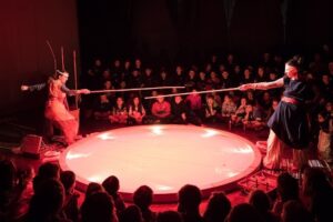 -ore 21.00 in piazza del Comune in anteprima assoluta per il Festival “Birba chi legge – Assisi fa storie” La bella, il fuso e il bosco addormentato, una produzione Rondine Balletto di Assisi in collaborazione con Fondazione Teatro Stabile dell’Umbria, spettacolo di parole, musica e danza liberamente tratto da “Il fuso e la scarpetta” di Charles Evans, testo e regia di Giulia Zeetti, coreografie di Valerio Polverari, scene, costumi e origami a cura di Grimmtwins, con Giulia Zeetti e Alice Amorotti, Alessandro De Ceglia, Angelica Gismondo, Giuseppe Stancanelli. Una suggestiva rilettura della famosa fiaba “La bella addormentata nel bosco” in cui la narrazione e il canto si fondono con la danza. L’incantesimo del bosco addormentato custodisce il sonno della bella Rosaspina che solo il coraggio di un Principe, pronto a superare la paura per farsi strada tra i rami intricati, riuscirà a interrompere. Sullo sfondo del Tempio della Minerva, due danzatrici, due danzatori, una narratrice-cantante, musicisti e rose di origami tesseranno, insieme alla fantasia dello spettatore, il filo della fiaba. Il finale sarà a sorpresa. Ingresso libero, posti a sedere su prenotazione (370 3070231), Biglietto unico 1€