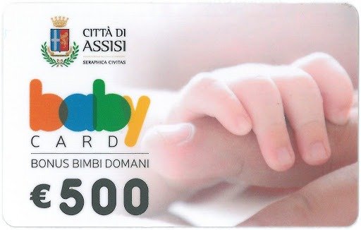 L’iniziativa, voluta fortemente dall’amministrazione comunale, risulta tra le prime adottate in Italia, è indirizzata a ogni nuovo nato residente nel territorio di Assisi In pratica a tutti i bambini nati a partire dal 1° gennaio 2018 viene inviata a casa la baby card a cui è associata la somma di 500 euro. Grazie al bonus i genitori o i familiari possono recarsi in farmacia e acquistare, fino a esaurimento della cifra, prodotti per la prima infanzia individuati in uno specifico “paniere” come ad esempio pannolini, latte, pappe, pastine, biscotti, omogeneizzati, etc, etc.