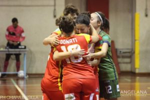 CHIARAVALLE (Ancona) – Un avvio lento e titubante in questa terza partita di campionato, dove sembra non accadere nulla per buona parte del primo tempo, quando prima Donati e poi Colucci sfiorano il goal. Qualche istante dopo arriva la reazione delle padrone di casa, che mancano il goal per un soffio grazie all’intervento di Di Giacomo e ancora Colucci (e una buona dose di sfortuna). Ci pensa Marta Mastrini a mandare il primo pallone in rete, ribattendo una respinta del portiere avversario dopo 11 minuti giocati. Le avversarie cercano il goal al dodicesimo, ma Conti è decisiva nell’azione difensiva, mandando l’Angelana nello spogliatoio a rete inviolata. Espulsa all’ottavo della ripresa, Caciorgna per proteste, dopo un grande salvataggio che vede Carola Colucci e Fattori a terra nella nostra area di rigore. Angelana in superiorità che va al goal con un tiro da cecchino firmato Michela Conti al nono del secondo tempo. Ci riprova poco dopo Mastrini ma il tiro esce di qualche millimetro. Per la terza volta in tre partite, l’Angelana si trova a dover difendere il portiere di movimento, ma mastrini stavolta centra con maestria la porta lasciata vuota: Chiaravalle 0, Angelana 3. Al quindicesimo però il Chiaravalle trova il goal e la partita si innervosisce. A 1’14” dalla fine Giorgia Catamero’ finalizza ancora per l’Angelana che torna a +3. Finisce così sul 1-4, con l’Angelana che mette in tasca altri 3 punti nonostante le difficoltà in questa partita viva solo nel finale, e caratterizzata da un arbitraggio più che mai incerto.