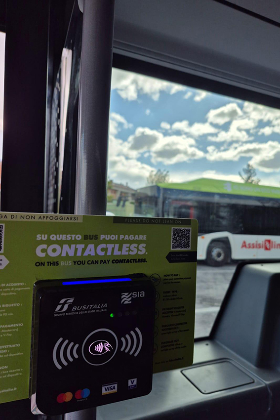 Sarà possibile acquistare senza maggiorazione di prezzo il biglietto urbano di Assisi (valido 90 minuti) e quello Umbria Airlink in modo semplice e immediato. È sufficiente avvicinare la propria carta o il proprio dispositivo di pagamento contactless al validatore, senza necessità di biglietto cartaceo.