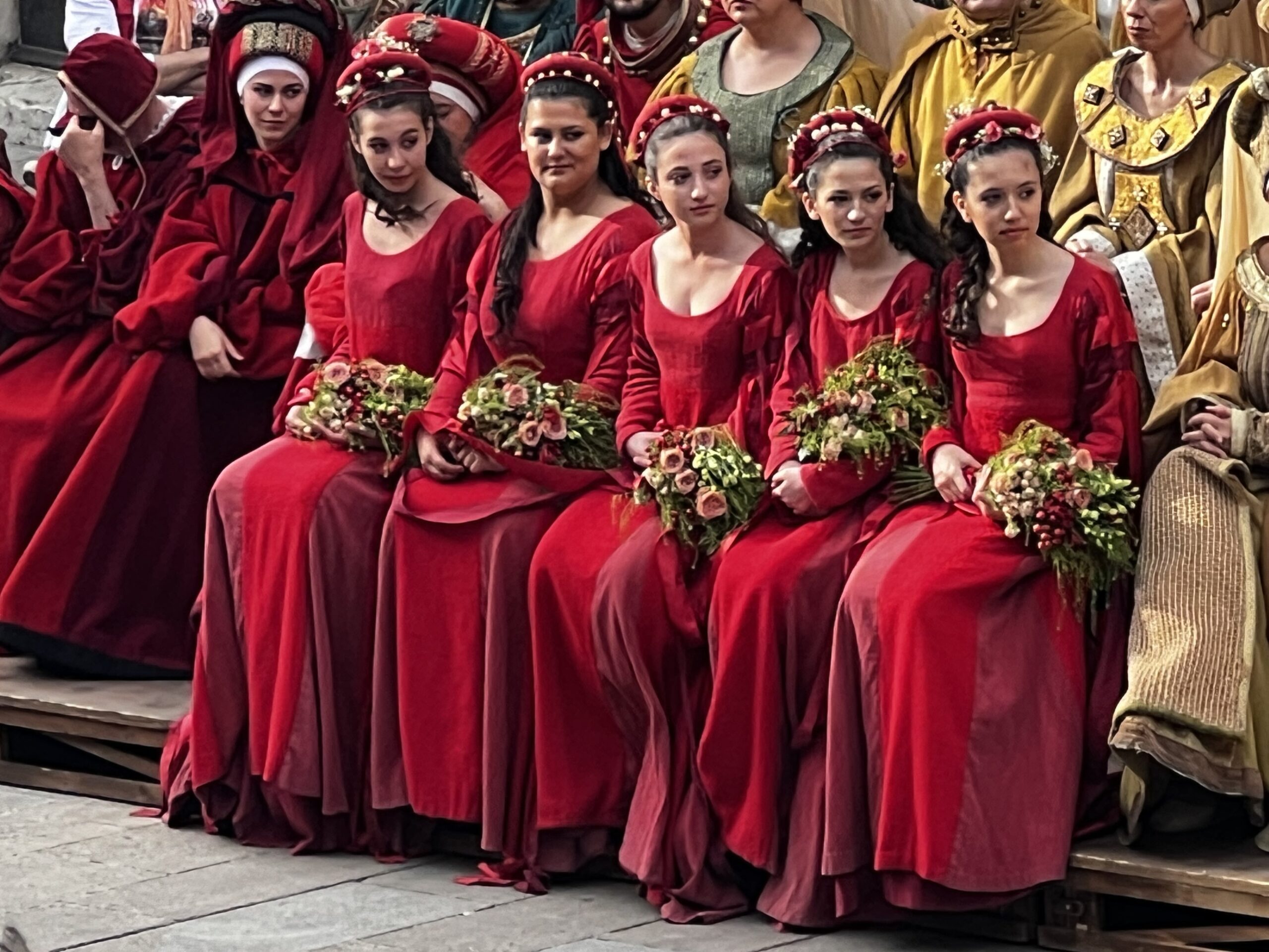 Domani 9 maggio dalle 16 è il giorno di “Madonna Primavera”, la regina della Festa eletta dopo le prove di agilità e di abilità tra gli sportivi di Magnifica e Nobilissima. A contendersi l’ambito titolo sono Milena Bocchini, Chiara Fabbri, Matilde Fiorucci, Martina Santarelli e Maddalena Simonelli per la Parte de Sotto ed Elisa Benvenuto, Viola Frascarelli, Caterina Roberti, Maria Sophia Sensi e Teresa Angelica Settimi per la Parte de Sopra.