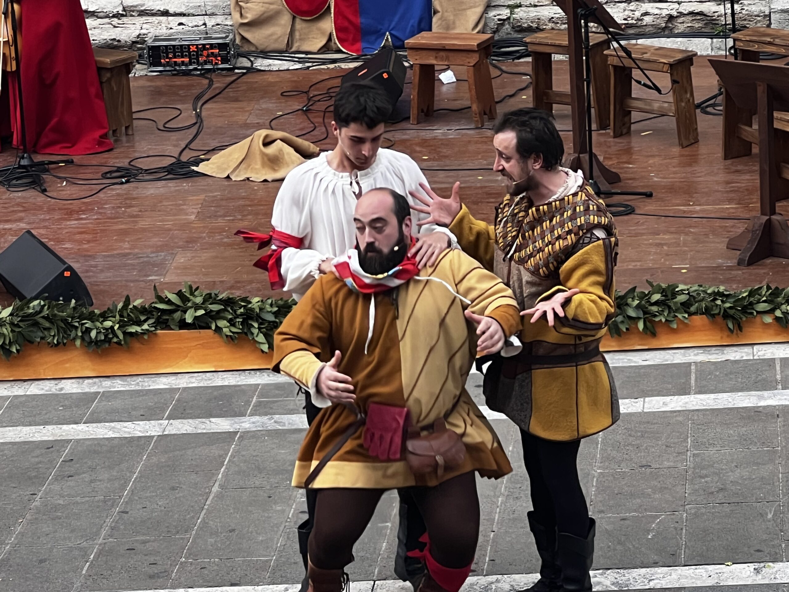 Il pomeriggio è terminato con la lettura dei bandi di sfida. Il programma del Calendimaggio di Assisi continua in serata, nei vicoli di Parte de Sotto, con le rievocazioni di vita medioevale.