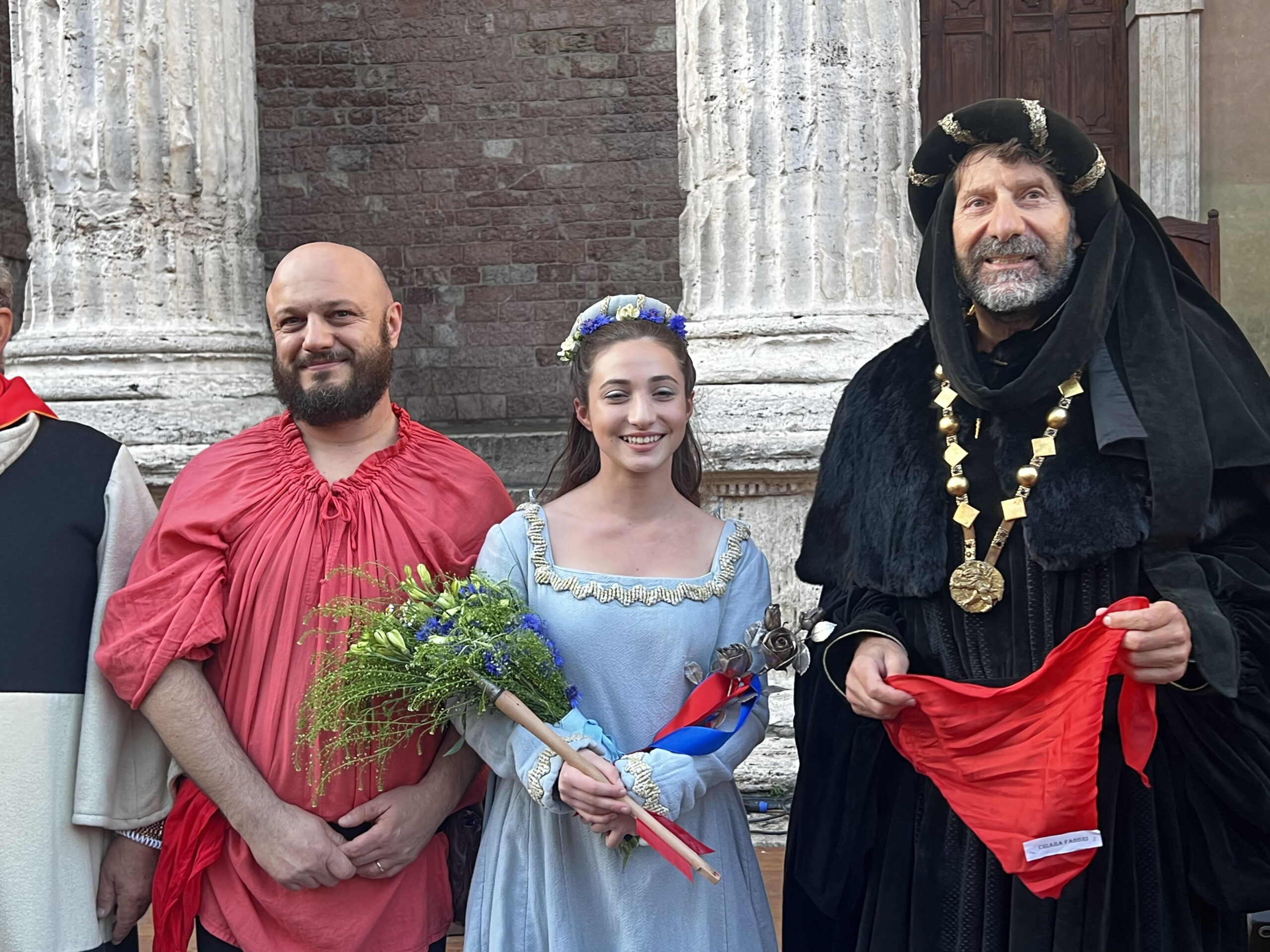 La Parte rossa con il Balestriere Fabio Passeri ha quindi eletto Monna Chiara Fabbri Regina della Festa e, come da tradizione, avrà la possibilità di svolgere per prima il prossimo anno le rievocazioni di vita medievale.