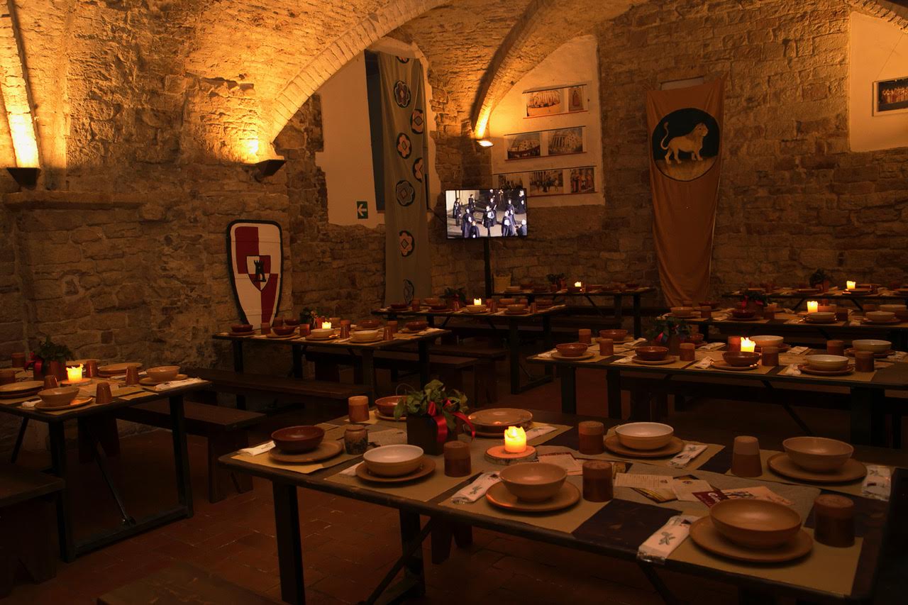 La taverna dell’Ente Calendimaggio alla Sala delle Volte è ancora aperta il 4, 5, 8, 9 e 11 maggio a pranzo e cena, il 6 maggio solo a cena, il 10 maggio a pranzo. Resterà chiusa il 7 maggio. Secondo menu fisso a 25 euro, con – come primo servizio – crostini ai tre diversi patè, peperoni, melanzane e fegatini, frittata ai carciofi, pappa al pomodoro e trippa. Capunti con gianciale ed erba e pappardelle al sugo d’oca come secondo servizio, maiale in agresto con patate arrosto come terzo servizio, torta alla cannella e dolce delle monache per chiudere.