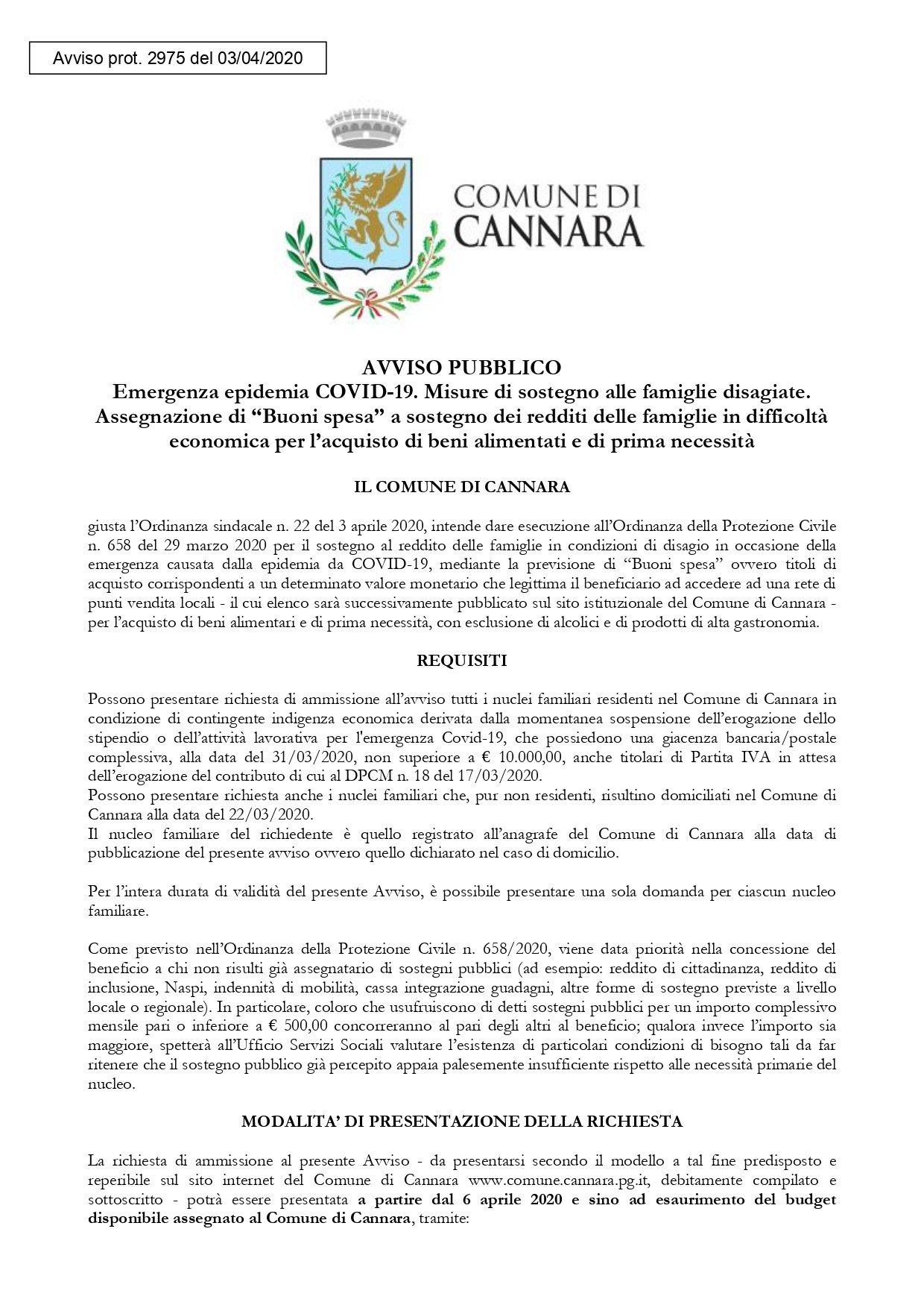 Modulo di domanda scaricabile al seguente link https://comune.cannara.pg.it/contenuti/169941/coronavirus-avviso-pubblico.