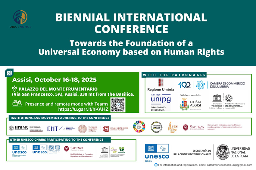 COMUNICATO STAMPA Da Assisi al mondo, la proposta di una Economia Universale fondata sui Diritti Umani Assisi, 02/10/2025 – Dal 16 al 18 ottobre 2025 si riuniranno ad Assisi, la terra di San Francesco, accademici, giudici, professionisti e referenti della società civile da diverse parti del mondo, in una Conferenza mondiale dal tema “Verso una Economia Universale fondata sui …