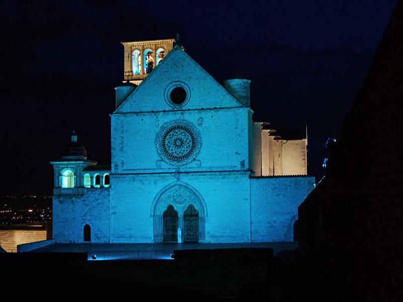 ASSISI: BASILICA DI SAN FRANCESCO SI ILLUMINA DI BLU PER GIORNATA MONDIALE CONSAPEVOLEZZA AUTISMO.