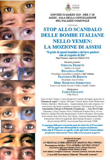 STOP ALLE BOMBE NELLO YEMEN: LA MOZIONE DI ASSISI. APPELLO A TUTTI I COMUNI PER FERMARE L’INVIO DELLE ARMI NEI PAESI IN GUERRA.