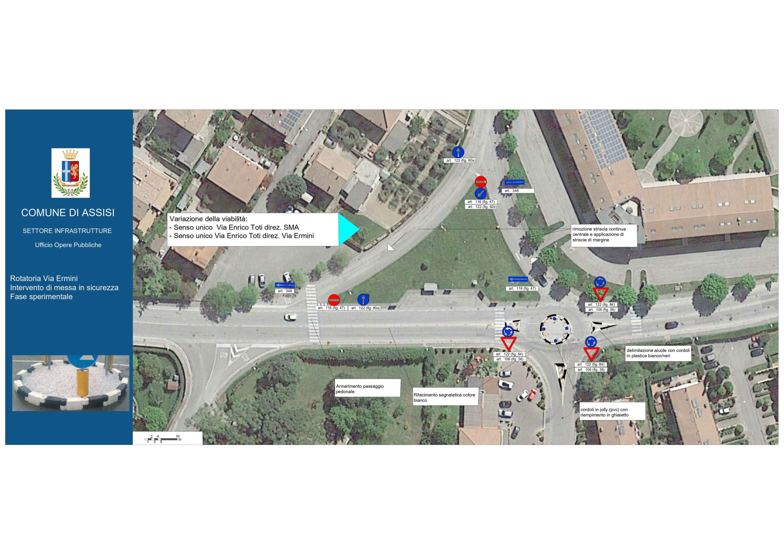 Domani inizieranno i lavori per la rotatoria di via Giuseppe Ermini a Santa Maria degli Angeli. Si tratta di un intervento semipermanente migliorativo dell’esistente che finora ha garantito la sicurezza dei cittadini, destinato poi entro l’anno a essere trasformato in una soluzione definitiva. I lavori prevedono anche il rifacimento della segnaletica verticale e orizzontale e l’apposizione di spartitraffico come prevede …