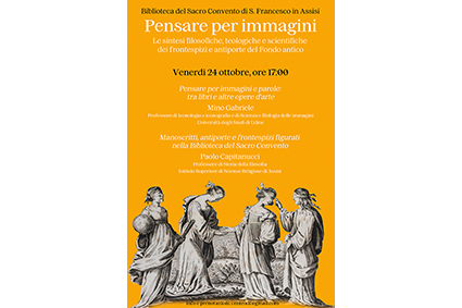 COMUNICATO STAMPA SAVE THE DATE BIBLIOTECA DEL SACRO CONVENTO: MINO GABRIELE INAUGURA IL NUOVO CICLO DI APPUNTAMENTI Venerdì 24 ottobre alle 17 in un incontro dal titolo “Pensare per immagini” Assisi, 20/10/2025 – Ripartono gli incontri proposti dalla Biblioteca del Sacro Convento. Il primo appuntamento del nuovo ciclo è in programma venerdì 24 ottobre 2025 alle ore 17 e …