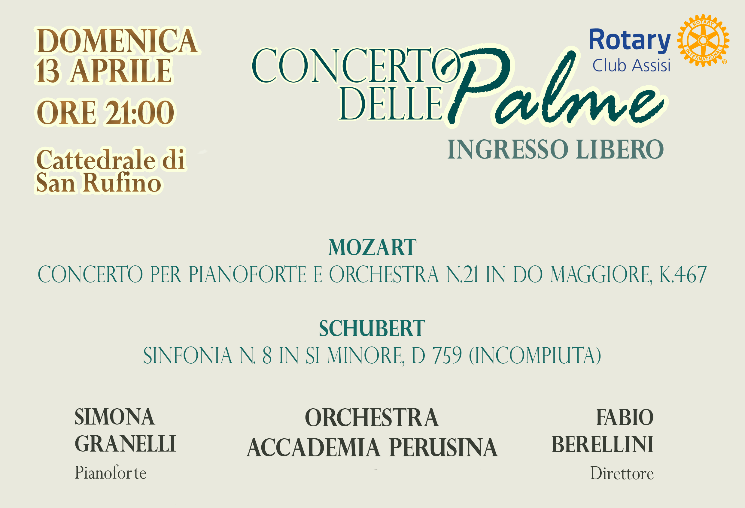 Rotary Club Assisi in collaborazione con il Comune di Assisi presentano il “Concerto delle Palme”