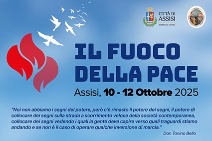 COMUNICATO STAMPA Fiamma accesa dal 10 al 12 ottobre in piazza del Comune; previsti momenti di riflessione, testimonianze, condivisione e preghiera FUOCO DELLA PACE AD ASSISI PER DIRE STOP ALLE GUERRE Il vescovo Monsignor Sorrentino: “Convertiamoci alla non violenza” Assisi, 07/10/2025 – “Davanti al disagio che tante nostre sorelle e fratelli stanno vivendo a Gaza, in Ucraina, Congo, Sud …