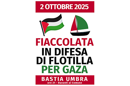 COMUNICATO STAMPA Comunicazione Importante: Fiaccolata in Difesa della Flotilla per Gaza Bastia Umbra, 02/10/2025 – Oggi, 2 ottobre, alle ore 21, si terrà una fiaccolata davanti al Comune di Bastia Umbra in solidarietà con la Flotilla per Gaza. L’iniziativa è un atto di sostegno e di sensibilizzazione in difesa dei diritti umani e della libertà per il popolo palestinese. …