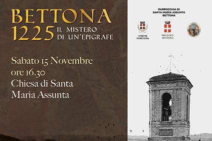 COMUNICATO STAMPA Convegno nel pomeriggio di sabato 15 novembre nella chiesa di Santa Maria Assunta Bettona 1225, il mistero dell’epigrafe Bettona, 13/11/2025 – La parrocchia di Santa Maria Assunta di Bettona, con il patrocinio del Comune e della locale Pro Loco, organizza e promuove, per sabato 15 novembre alle ore 16.30 nella Chiesa di Santa Maria Assunta, in piazza …