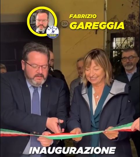 Il candidato regionale Fabrizio Gareggia inaugura il comitato elettorale di Cannara alla presenza del presidente Donatella Tesei.