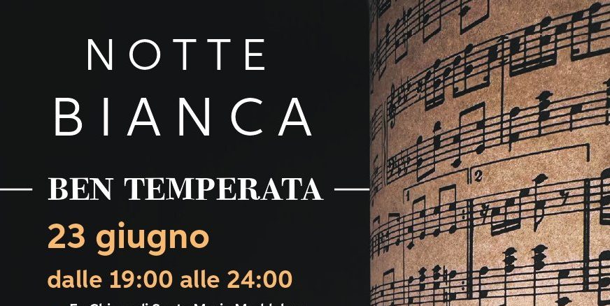 Il 23 giugno p.v., dalle 19 alle 24, nell’ambito delle manifestazioni musicali promosse dal Conservatorio di Musica “F. Morlacchi” di Perugia, avrà luogo l’evento “Notte Bianca – ben temperata -”. Tre concerti, in contemporanea, che si terranno in alcuni dei luoghi più suggestivi della Città, tra i quali, la splendida ex Chiesa di Santa Maria Maddalena con annesso chiostro benedettino …