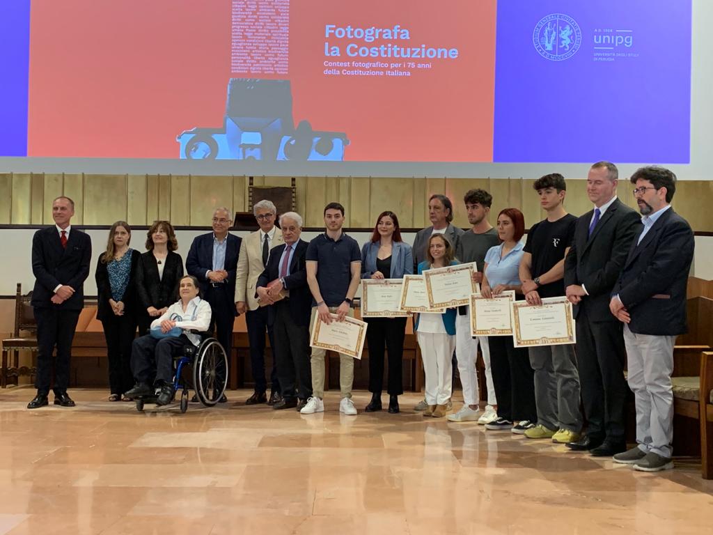 I vincitori del concorso “Fotografa la Costituzione” di UniPg con RAI e Ufficio Scolastico dell’Umbria, la premiazione in Aula Magna.
