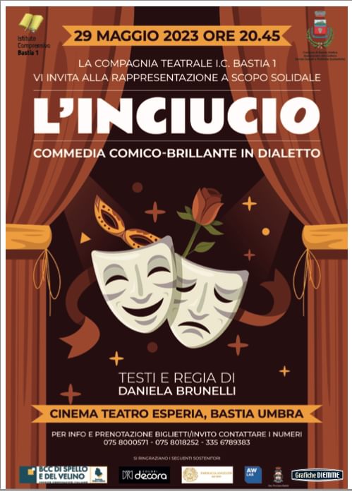 Il 29 maggio alle 21.00 presso il Cinema Teatro Esperia la compagnia teatrale dell’IC Bastia 1 con una rappresentazione a scopo solidale dal titolo L’INCIUCIO.