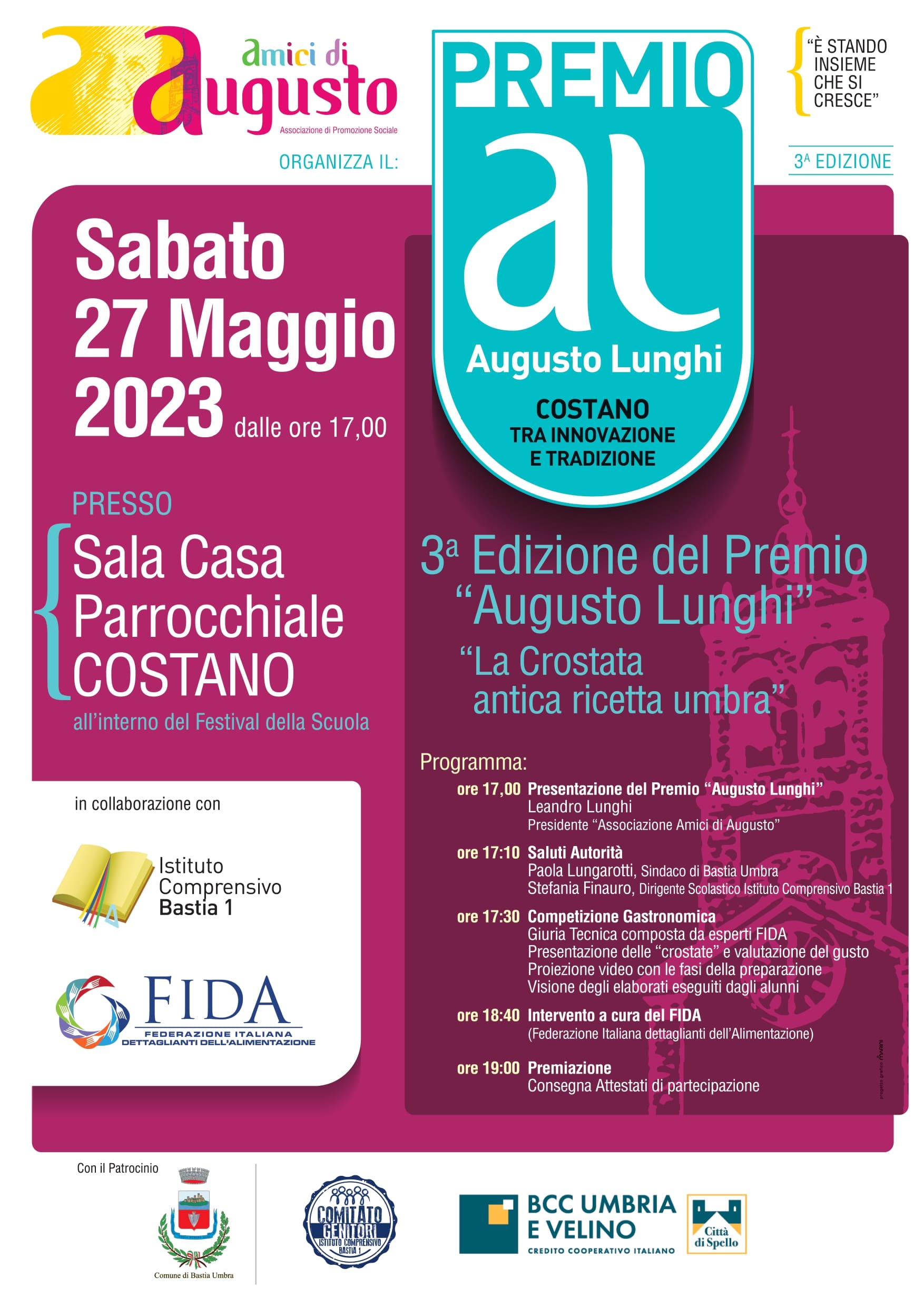 Sabato 27 Maggio 2023 3^ edizione del Premio Augusto Lunghi “Costano tra innovazione e tradizione”, promosso dall’ Ass. Amici di Augusto APS (ore 17.00).