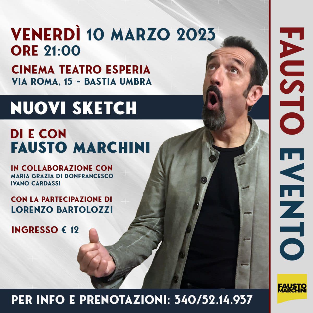 “Fausto evento”, di e con Fausto Marchini in collaborazione con Ivano Cardassi e Maria Grazia Di Donfrancesco, è la seconda di quattro rappresentazioni della rassegna “C’è Teatro”, terza edizione, al Cinema Teatro Esperia di Bastia Umbra. Marhini torna sul palco di Bastia Umbra venerdi’ 10 marzo alle ore 21.00 per presentare un mosaico travolgente di sketch comici che riflettono sulla …