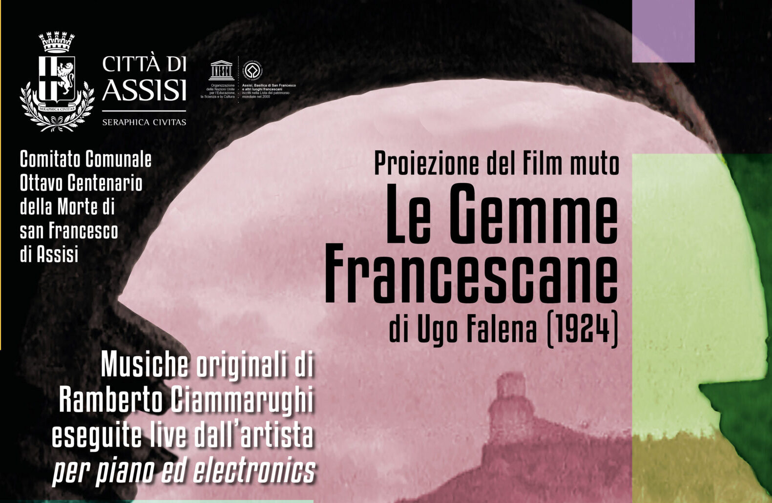 COMUNICATO STAMPA Il 29 marzo proiezione del documentario di Ugo Falena su Assisi e San Francesco prodotto dall’Istituto Luce, con colonna sonora creata per l’occasione dal noto artista “LE GEMME FRANCESCANE”, SUL FILM MUTO DEL 1924 LE MUSICHE DAL VIVO DEL PIANISTA CIAMMARUGHI Primo grande evento promosso dal Comitato cittadino istituito dal Comune in vista dell’ottavo centenario della morte del …