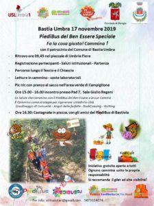 La Usl Umbria 1 partecipa alla fiera del consumo consapevole e degli stili di vita sostenibili di Bastia Umbra con una speciale passeggiata che vedrà coinvolte varie linee Piedibus del Ben Essere attive sul territorio. Lungo il tragitto soste con laboratori sulla sostenibilità. Bastia Umbra, 15 novembre 2019 – Anche quest’anno la Usl Umbria 1 partecipa a “Fa’ la cosa giusta”, la fiera del consumo consapevole e degli …