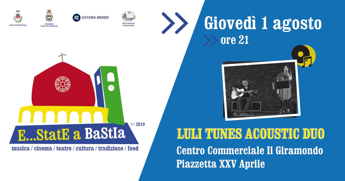 E…state a Bastia: Giovedì 1°Agosto Luli Tunes Acoustic Duo – Centro commerciale Il Giramondo – Piazzetta XXV Aprile.
