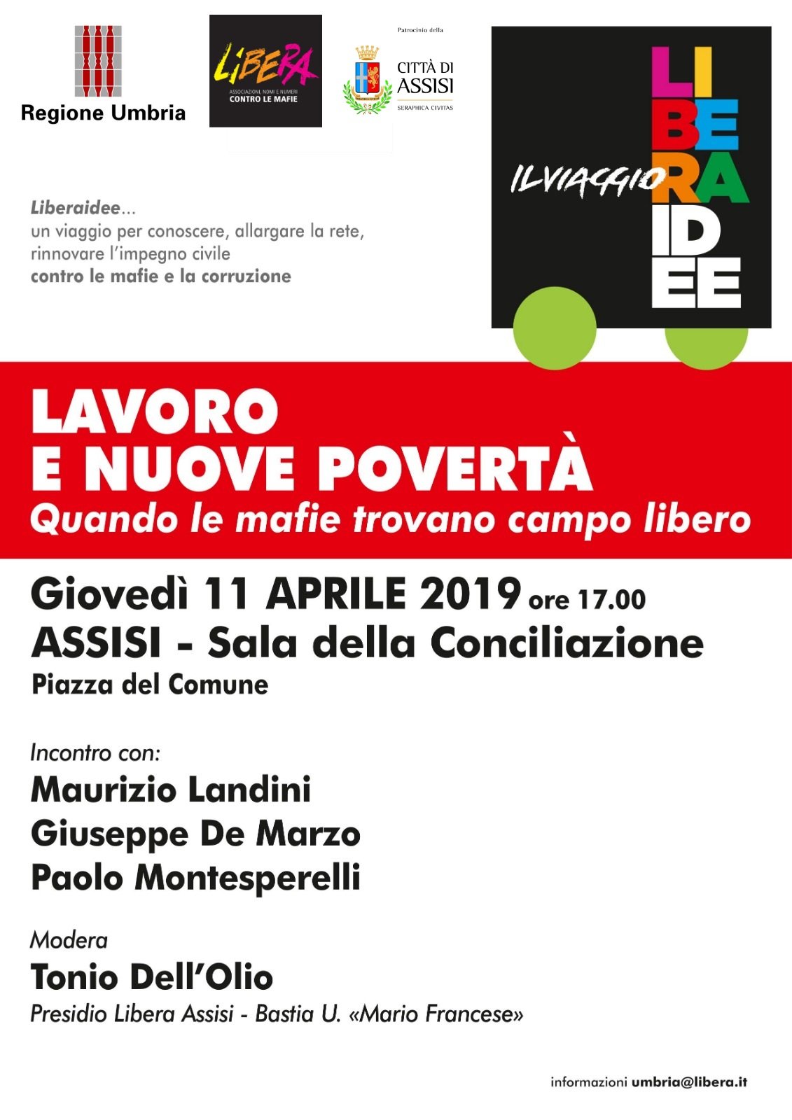 AD ASSISI L’11 APRILE LA TAPPA DI LIBERAIDEE UMBRIA. Con Maurizio Landini della CGIL per parlare di “lavoro e nuove povertà”.