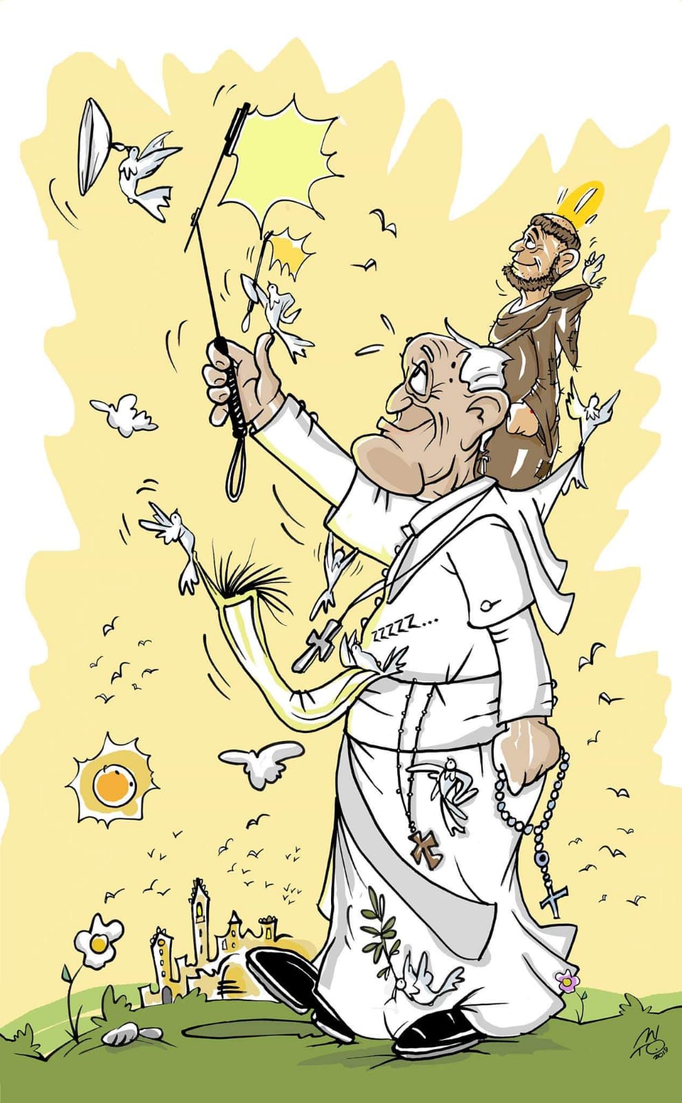 ARTE, LE VIGNETTE DI SULLO SU PAPA FRANCESCO IN MOSTRA AD ASSISI.