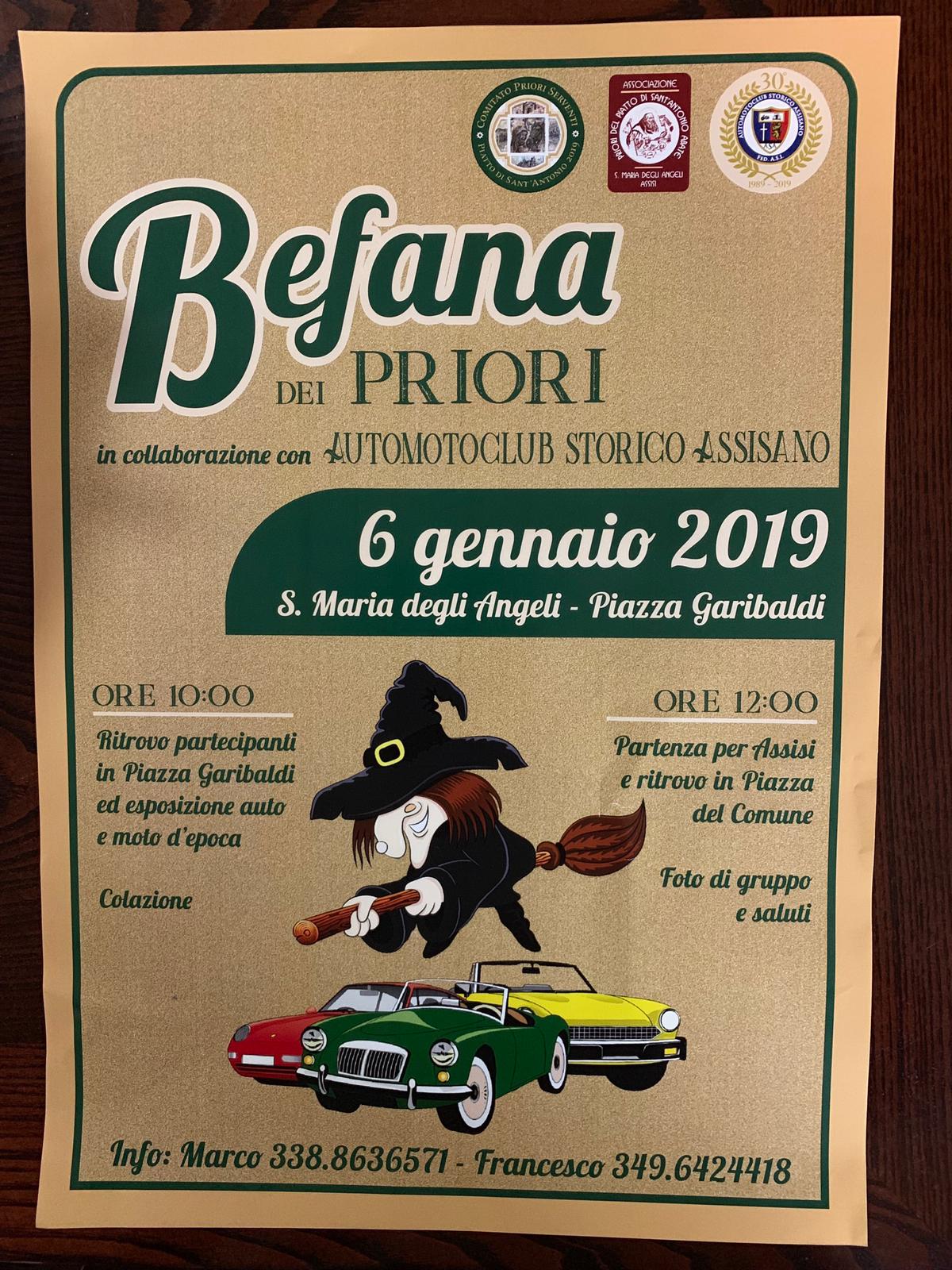 Santa Maria degli Angeli 2 gennaio ‘19 – Arriva, quest’anno anche sopra ad una luminosa auto d’epoca, la “Befana dei Priori” che si terrà il 6 dicembre a Santa Maria degli Angeli. Ad organizzare l’evento sono il comitato Priori Serventi, l’associazione Priori del Piatto di sant’Antonio Abate e l’Automotoclub Storico Assisano. Il programma prevede il ritrovo dei partecipanti in piazza …