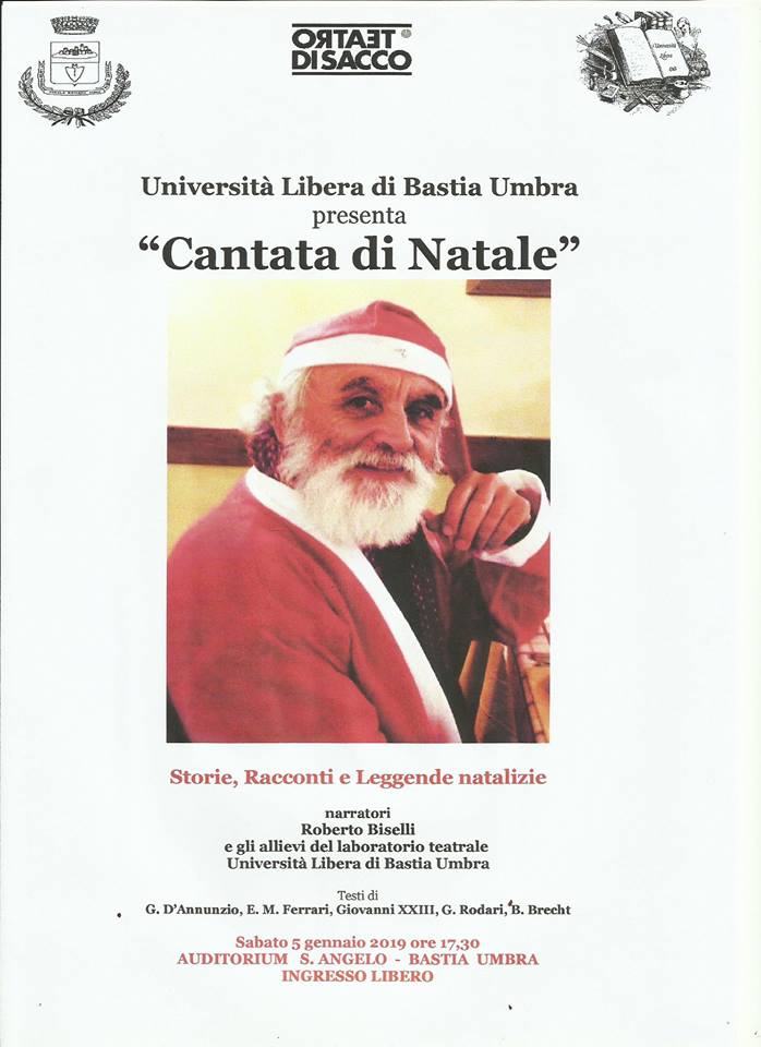 “Un piacevole viaggio emotivo nella ricca tradizione di storie e leggende locali riguardanti il Natale” Anche quest’anno il Laboratorio teatrale dell’Università Libera è presente nella programmazione Natalizia dell’Amministrazione Comunale di Bastia e non solo. Infatti la sua performance è anche tra quelle che il Teatro di Sacco offre alla città di Perugia per il “Natale al Borgobello”, storico …