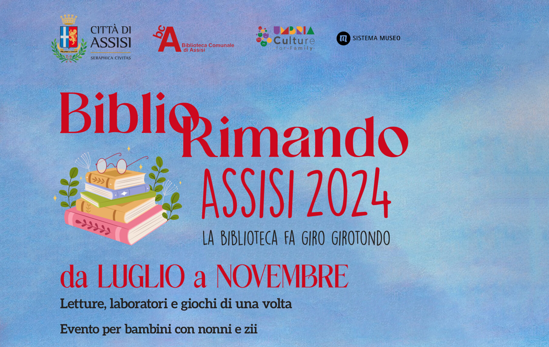 La Biblioteca Comunale di Assisi invita tutte e tutti al nuovo appuntamento del BiblioRimando! La Biblioteca fa giro girotondo, con tante letture, laboratori e giochi di una volta per divertirci tutti assieme con nonne e nonni, zie e zii! Vi aspettiamo martedì 16 luglio alle ore 21 CASTELNUOVO, presso l’Area Festa Evento gratuito INFO biblioteca@comune.assisi.pg.it +39 075 813481