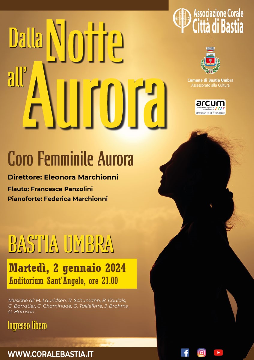 Martedì 2 Gennaio 2024 ore 21.00, “Concerto dalla notte all’aurora”. Inauguriamo il 2024 con le ragazze del Coro femminile Aurora, con un programma corale e strumentale di grande suggestione. La formazione corale giovanile torna al suo pubblico dopo alcuni mesi di pausa, dedicati all’approfondimento e alla preparazione vocale, con un accattivante programma di musica contemporanea, tra cui alcuni brani tratti …