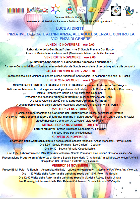 LUCE AI DIRITTI. IL COMUNE DI BASTIA UMBRA PER I DIRITTI DELL’INFANZIA E DELL’ADOLESCENZA E CONTRO LA VIOLENZA DI GENERE.