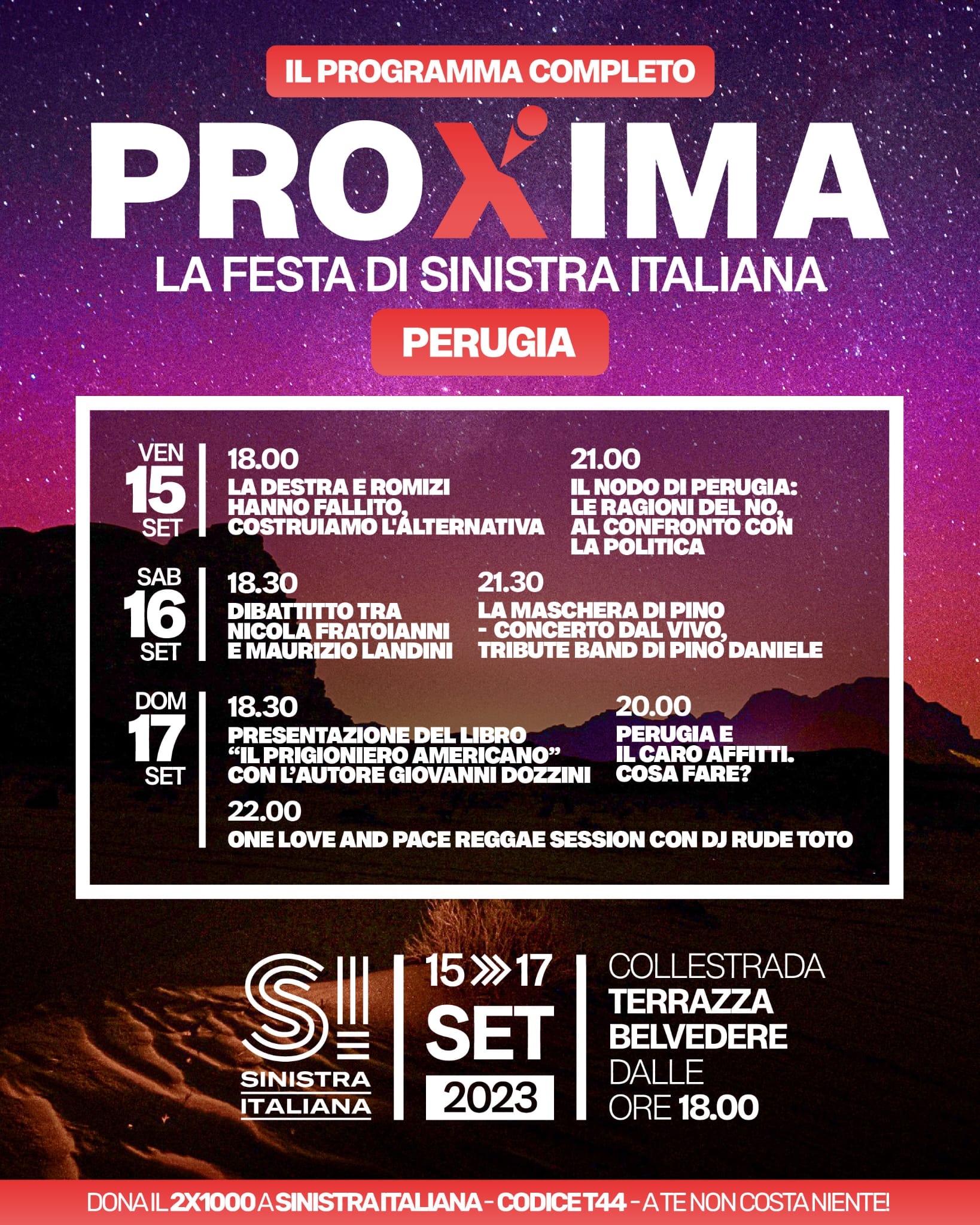 “Proxima”, la Festa Nazionale di Sinistra Italiana 2023 a Perugia dal 15 al 17 settembre.