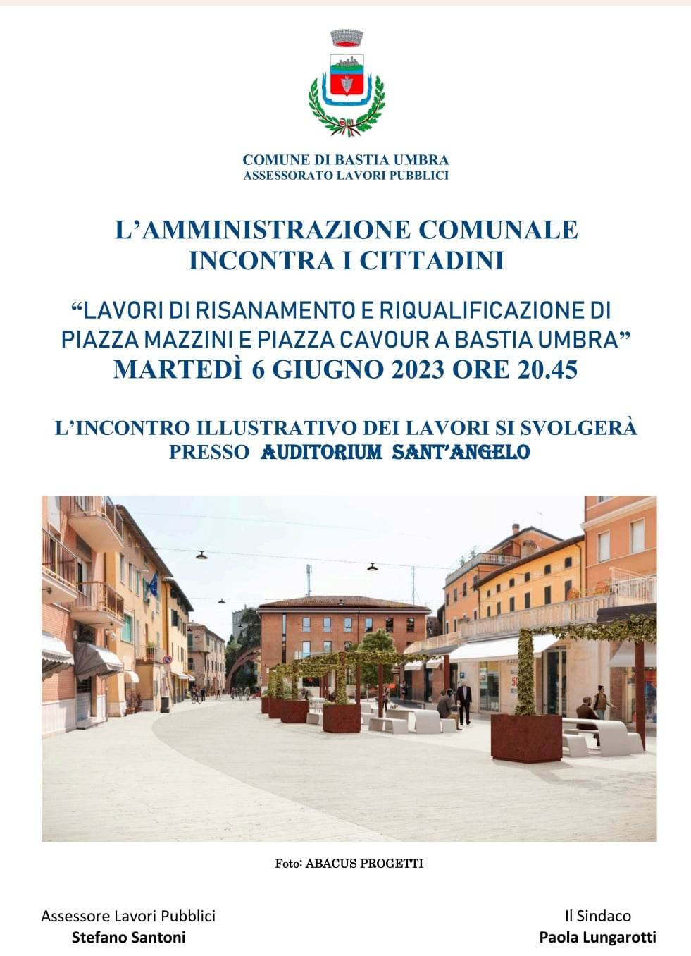 In vista dell’imminente avvio dei lavori di riqualificazione di piazza Mazzini, l’Amministrazione Comunale di Bastia Umbra ha promosso per Martedì 6 Giugno 2023, alle ore 20.45 presso l’Auditorium Sant’Angelo, un incontro con la cittadinanza e le associazioni per illustrare le varie fasi dei lavori del progetto di restyling che vuole dare un nuovo volto alla piazza principale della Città. All’assemblea …