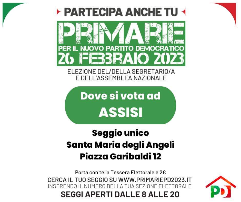 Domenica 26 febbraio si voterà per le primarie del Partito Democratico. Anche nel Comune di Assisi ci sarà la possibilità di partecipare. Il seggio sarà allestito presso la sede della Pro Loco di Santa Maria degli Angeli in Piazza Garibaldi e sarà aperto dalle 8 alle 20. È un momento cruciale per la storia del nostro paese e il Partito …