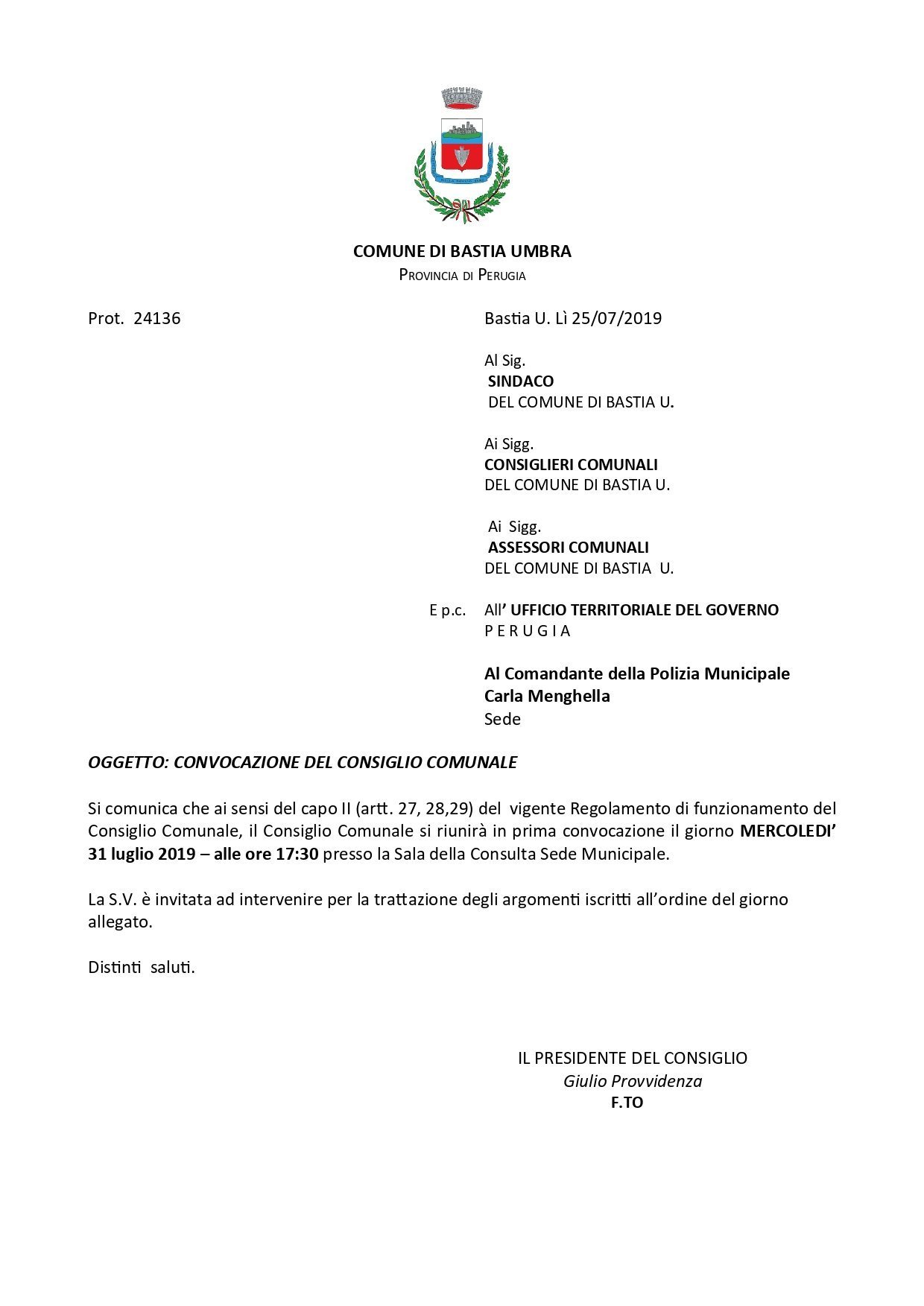 Comune di Bastia Umbra – Convocazione del Consiglio Comunale.
