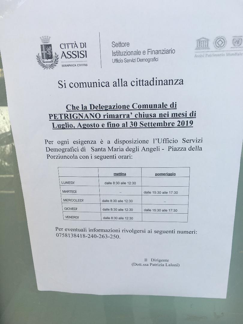 Dopo svariate segnalazione e lamentele da parte di una cittadinanza stanca e stufa … che si domanda … Quali servizi vengono erogati ai cittadini del comune di Assisi? Se necessitano di un certificato o di altro dall’ufficio Anagrafe lo potranno ricevere o richiedere, in questi orari e con queste modalità. Perché? …