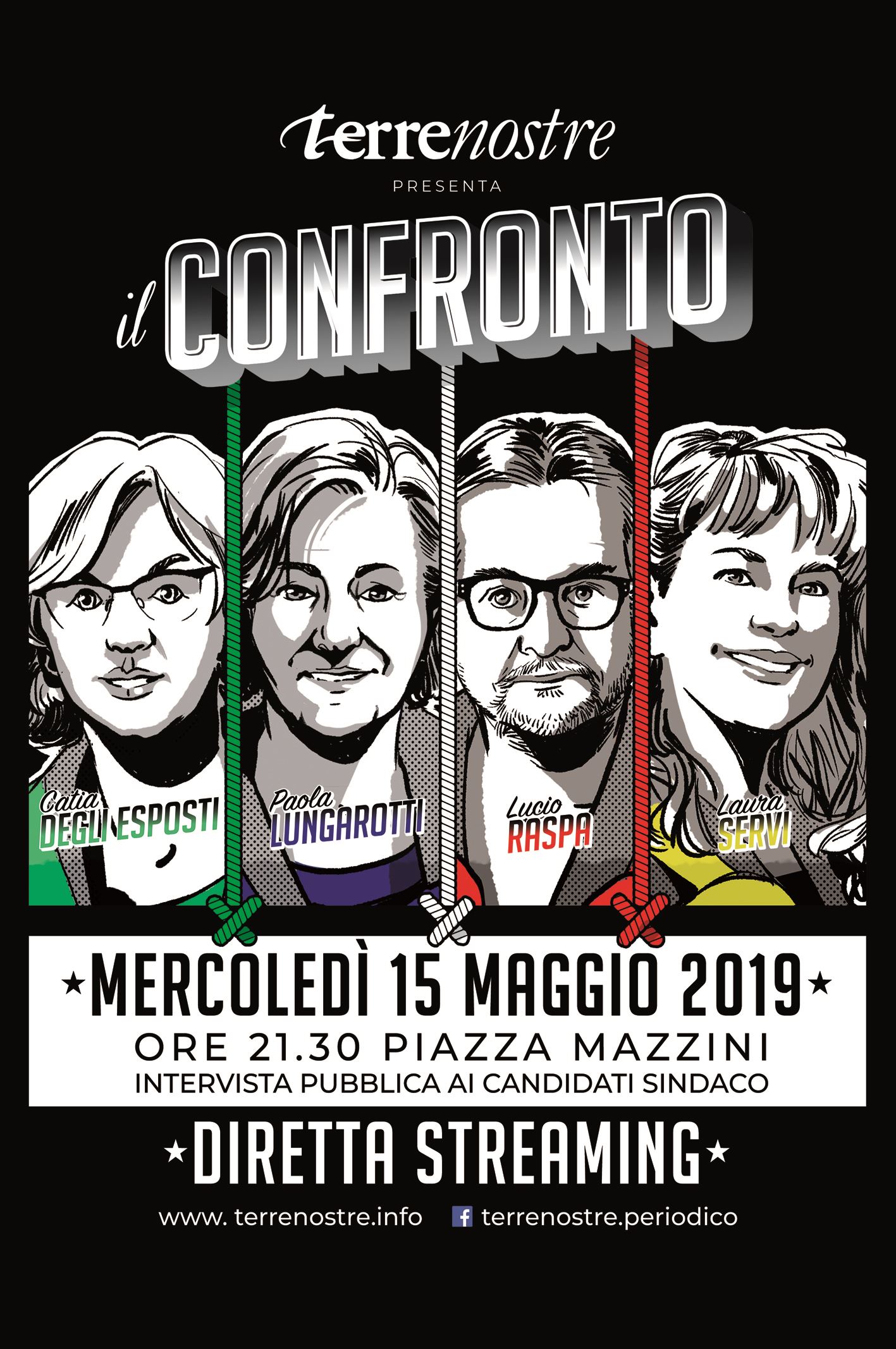 Domani 15 maggio 2019 alle ore 21.30 in Piazza Mazzini Intervista Pubblica ai Candidati Sindaco del Comune di Bastia Diretta Streaming dalle 21.30 terrenostre.info Il Confronto tra i candidati a sindaco del Comune di Bastia, previsto per le 21.30 di stasera, in piazza Mazzini, è stato spostato al Cinema Esperia sempre alla stessa ora.