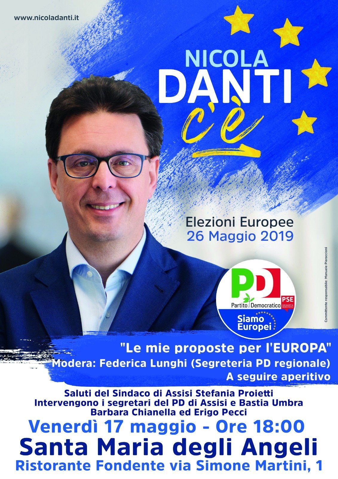 Venerdì prossimo, 17 maggio, i cittadini di Assisi e Bastia (e non solo), sono invitati all’incontro dibattito che si terrà alle ore 18:00 presso il Ristorante Fondente di Santa Maria degli Angeli (via Simone Martini, 1). L’incontro è organizzato dal Partito Democratico ed è finalizzato a far conoscere le proposte per UNA NUOVA EUROPA ed il candidato alle elezioni europee …