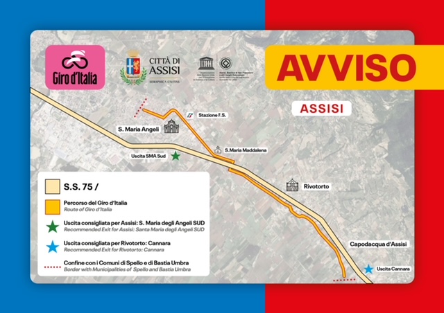Giro d’Italia ad Assisi il 10 maggio: modifiche alla viabilità, scuole chiuse e raccolta rifiuti