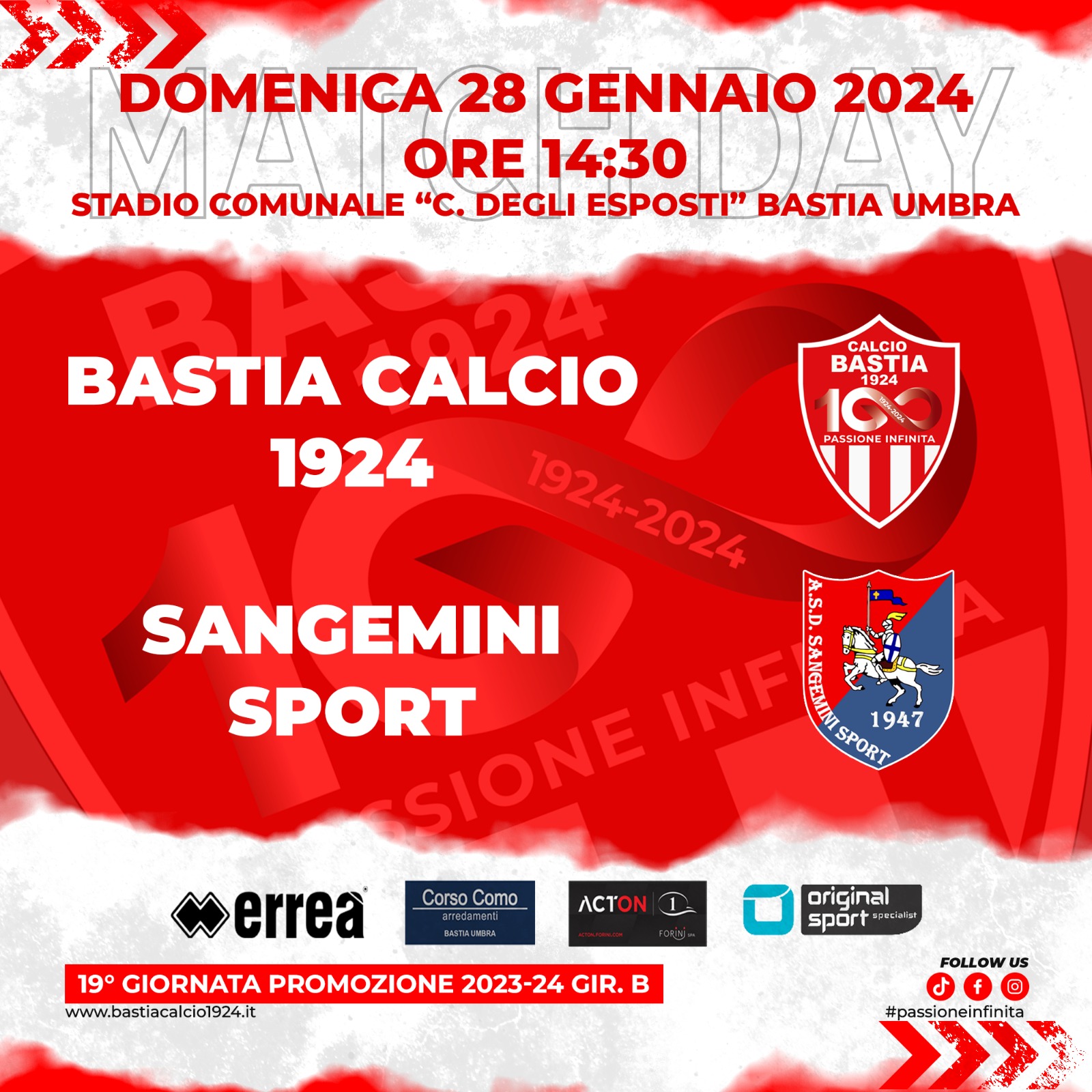 CALCIO – Bastia 1924 – Sangemini ORE 14:30 BASTIA UMBRA – Domenica 28 allo stadio Carlo Degli Esposti il Bastia calcio 1924 ospiterà il Sangemini sport. I rossoblù sono in lotta per conquistare la salvezza con appena 14 punti. L’incontro sarà diretto dal signor Taras Lukan della sezione di Foligno. Sarà assistito nell’occasione da Vittorio Ricci e Stefano Della Botte …
